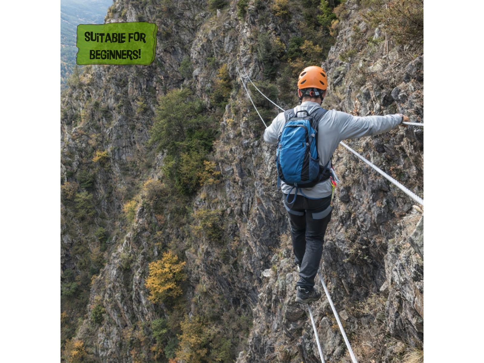 A short and fun via ferrata, perfect for first-timers. Dynamic, entertaining, and with beautiful views, it’s an ideal introduction to via ferrata adventures.