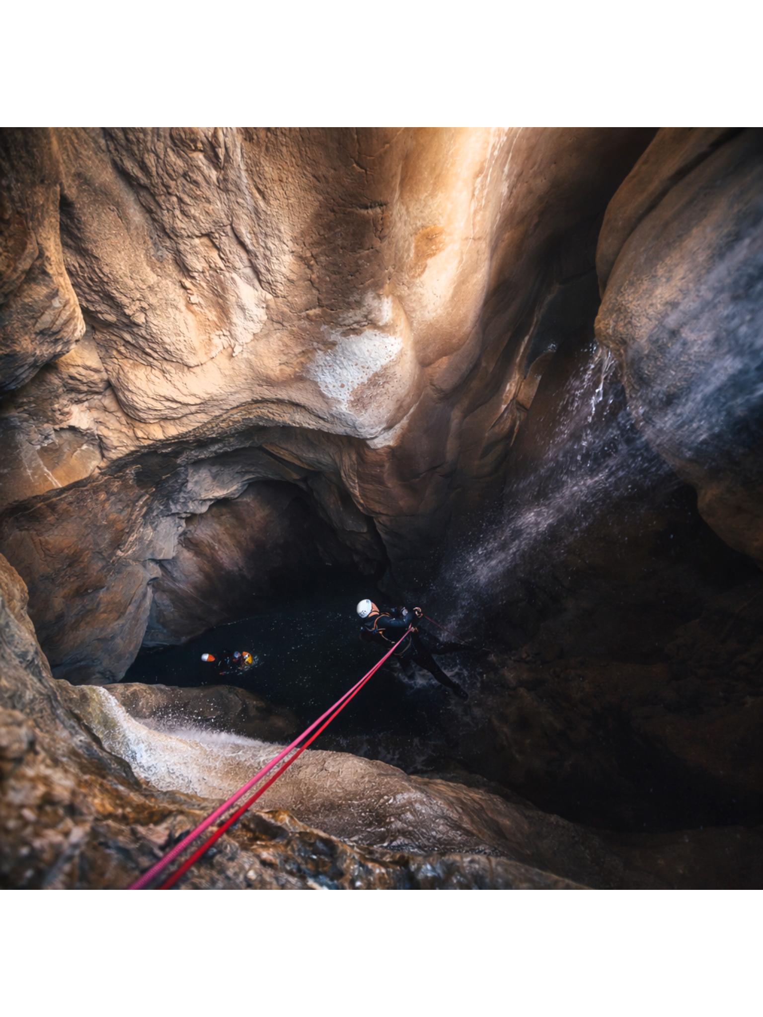 Durante el curso aprenderemos todo tipo de maniobras que permiten realizar autorrescate dentro de un barranco. Corte de cuerda, remontar personas o liberar reuniones para despejar la cabecera son algunas de las maniobras que aprenderemos para adquirir todos los conocimientos necesarios.