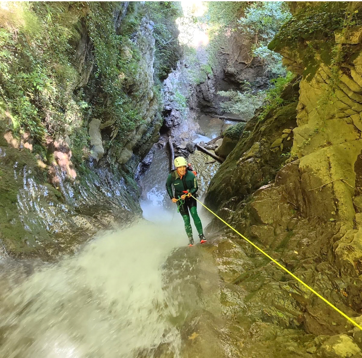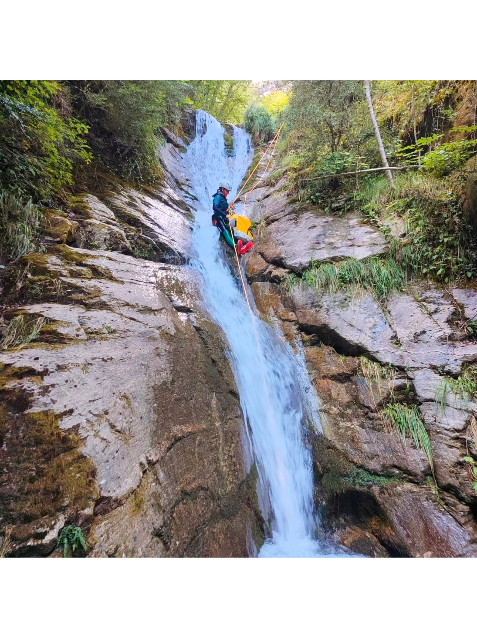 Barranc obert i boscós amb diferents ràpels propers als 30m amb salts d’aigua espectaculars!