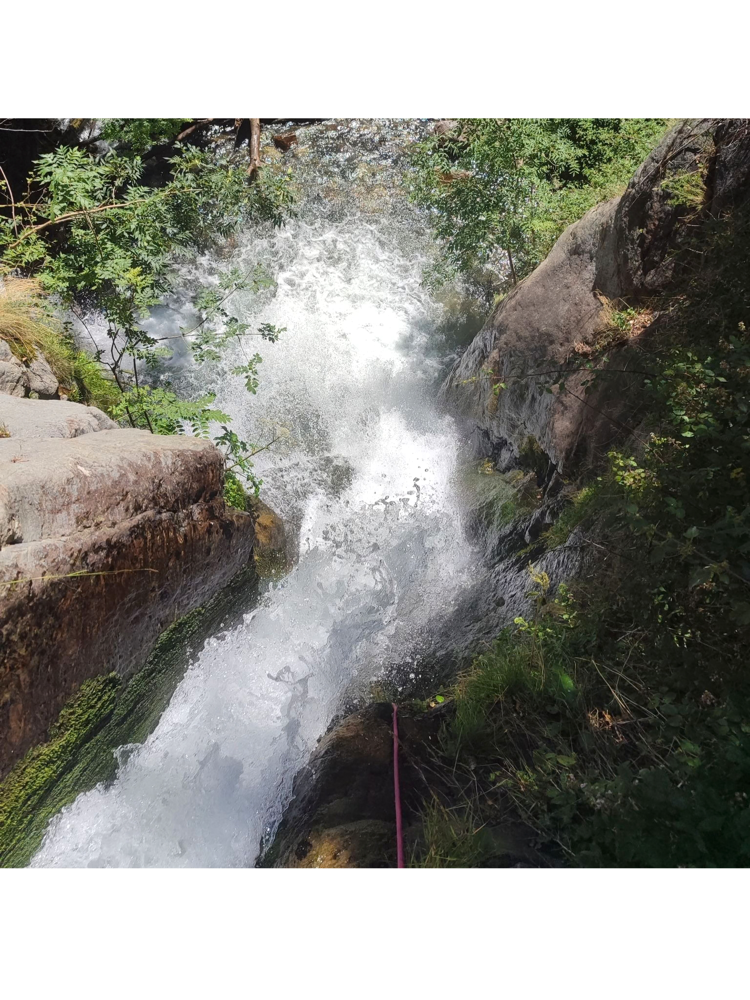 Barranc amb llargs tobogans on alguns d’ells progressarem amb corda. Gran quantitat de ràpels.